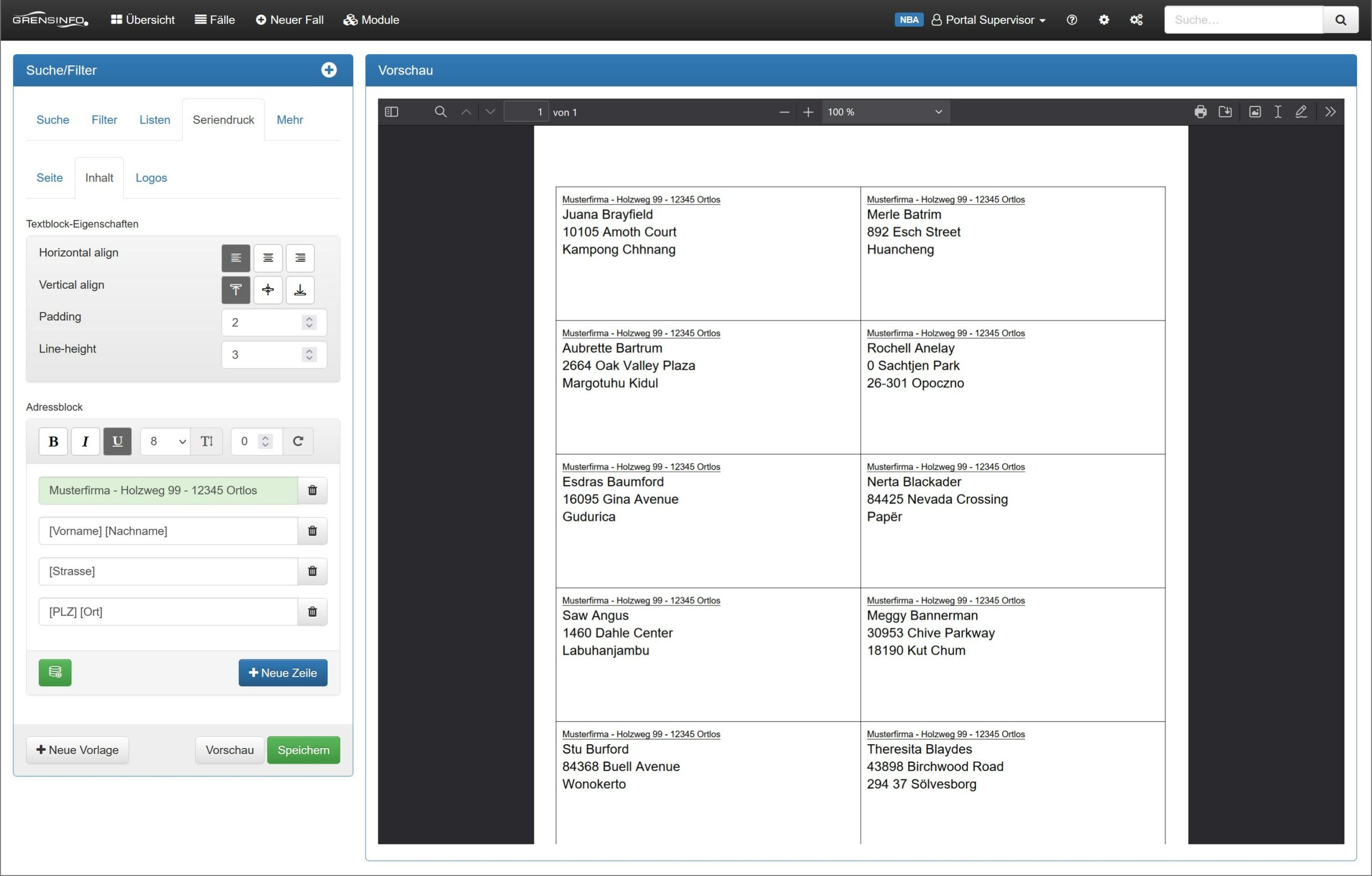 Mit dem Seriendruckmodul erzeugen Sie aus ihrem Adressbuch PDFs für Versandaufkleber, Tischaufsteller oder Visitenkarten.